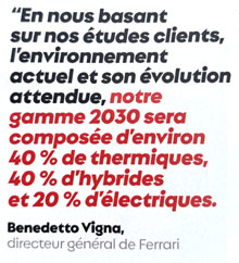 En voitures de série, Alpine voit hélas l’avenir en 100% électrique ce qui n’intéresse pas grand monde, alors que Benedetto Vigna, Directeur Général de Ferrari, prévoit une gamme Ferrari 2030 à 40% thermique, 40% hybride et 20% seulement tout électrique (source Sport-Auto novembre 2025) … Eh oui, il n’y a qu’en France, tout petit pays d’Europe de l’Ouest, qu’il existe une taxe carbone sur les voitures !