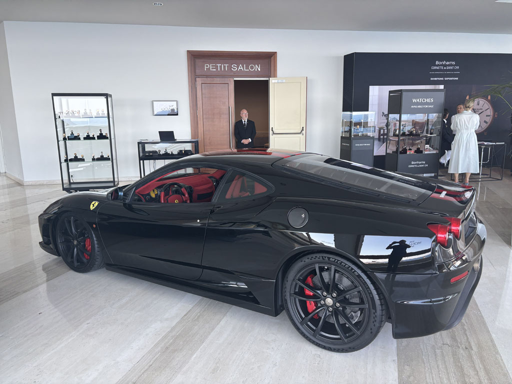 Un ami m’a rejoint et nous prenons la direction du port à pied par le tunnel, puis le long du Yacht Club côté port. Là des grandes tables sont en train d’être dressées sous un barnum sur le quai et près d’une vingtaine de Formule 1 Ferrari sont alignées sous des bâches. C’est un événement privé Ferrari qui se prépare, seule une Ferrari Amalfi est à découvert. On en glissera sûrement des bons de commande aux invités avec le café !