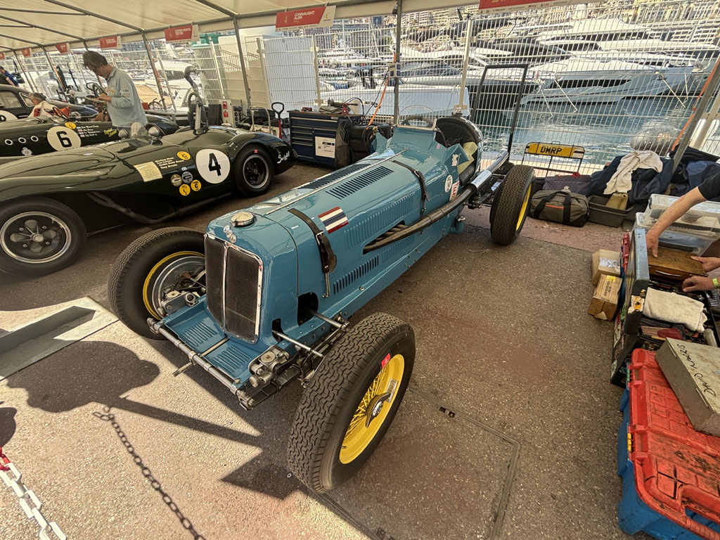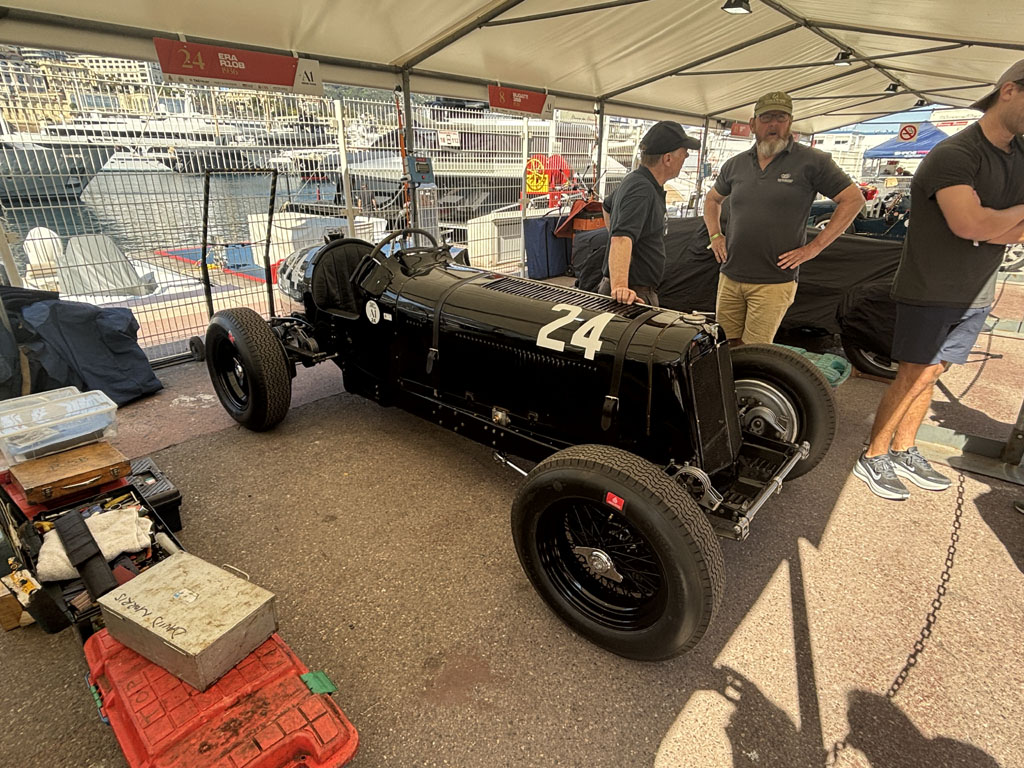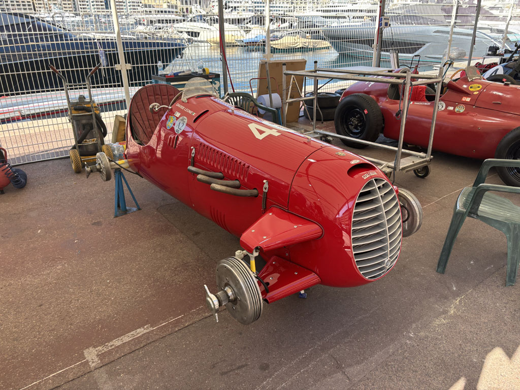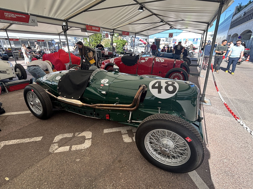 Nous prenons le bateau bus électrique pour traverser le port au milieu des yachts et nous voici au paddock. Il y a beaucoup plus d’effervescence qu’hier. Tous les concurrents sont arrivés et on s’affaire autour des voitures tandis que le public est plus nombreux. Je vous ai refait une vidéo de la partie des voitures de sport et avant-guerre qui était assez déserte hier. D’autres Formule 1 sont arrivées aussi et les ERA d’avant-guerre sont là, rutilantes. Je tâte leurs pneus, bien tendres et je me demande si ce n’est pas de la gomme racing chauffante, ce qui expliquerait encore plus leur domination de la série.