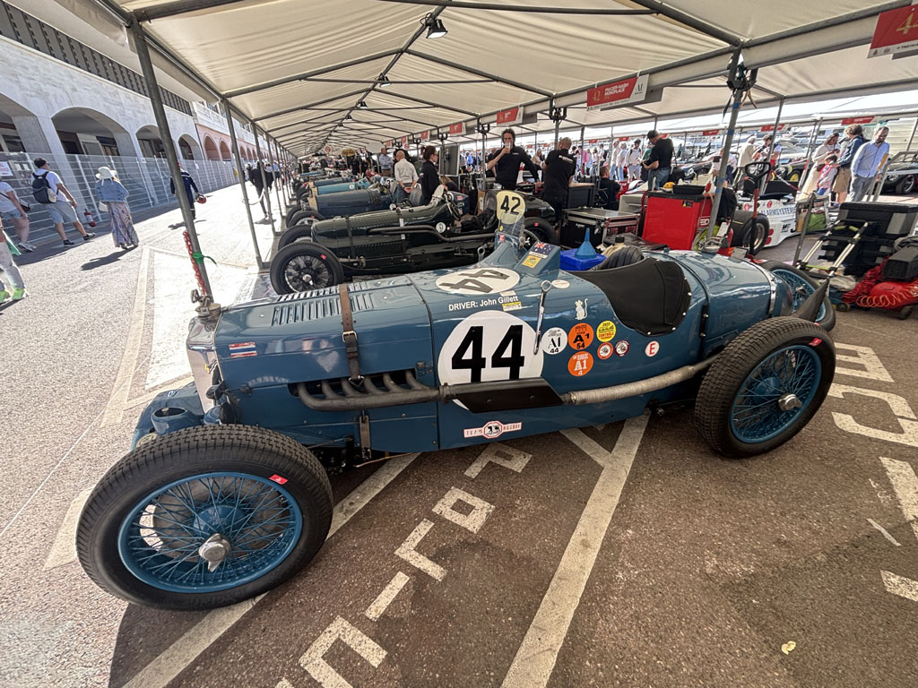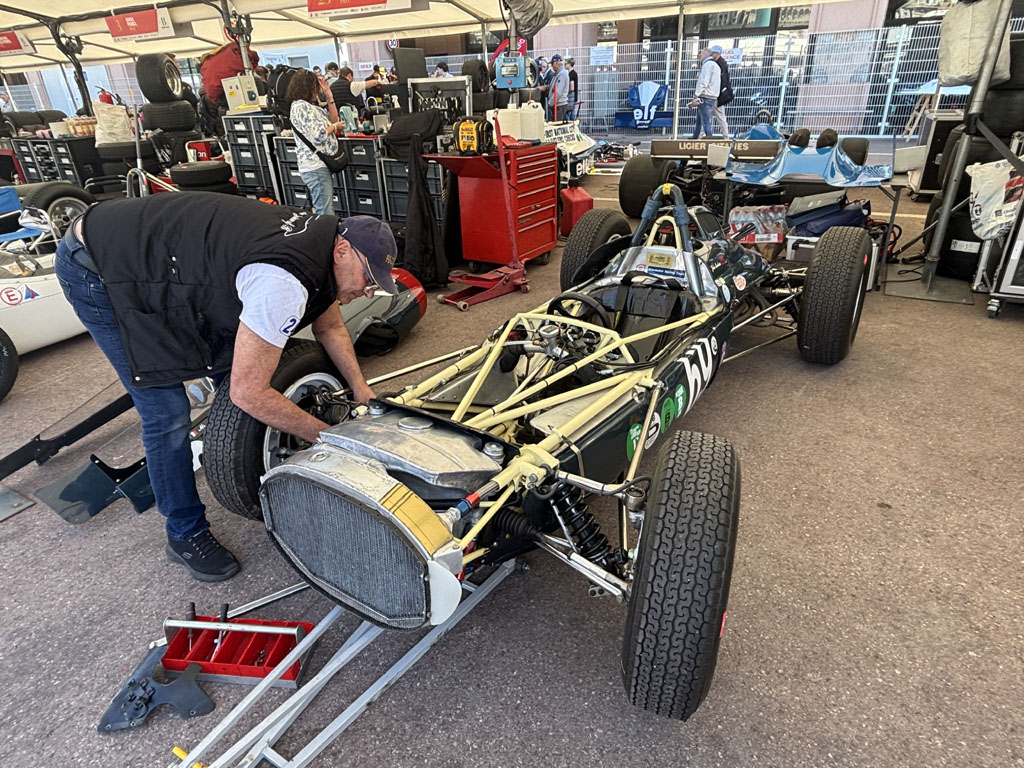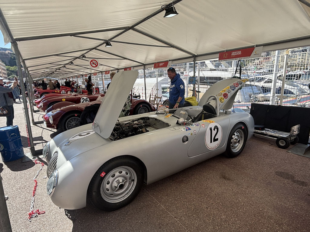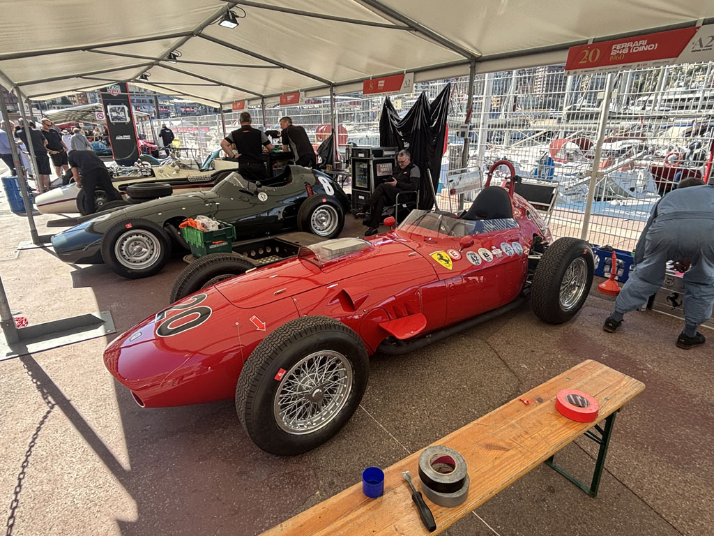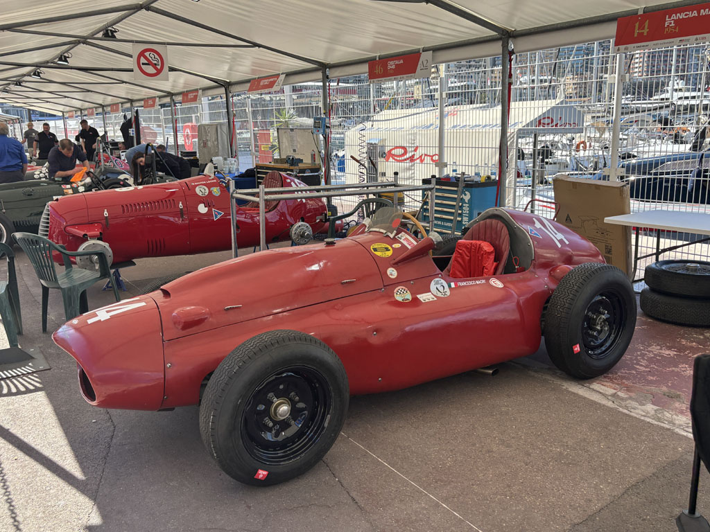 Nous prenons le bateau bus électrique pour traverser le port au milieu des yachts et nous voici au paddock. Il y a beaucoup plus d’effervescence qu’hier. Tous les concurrents sont arrivés et on s’affaire autour des voitures tandis que le public est plus nombreux. Je vous ai refait une vidéo de la partie des voitures de sport et avant-guerre qui était assez déserte hier. D’autres Formule 1 sont arrivées aussi et les ERA d’avant-guerre sont là, rutilantes. Je tâte leurs pneus, bien tendres et je me demande si ce n’est pas de la gomme racing chauffante, ce qui expliquerait encore plus leur domination de la série.