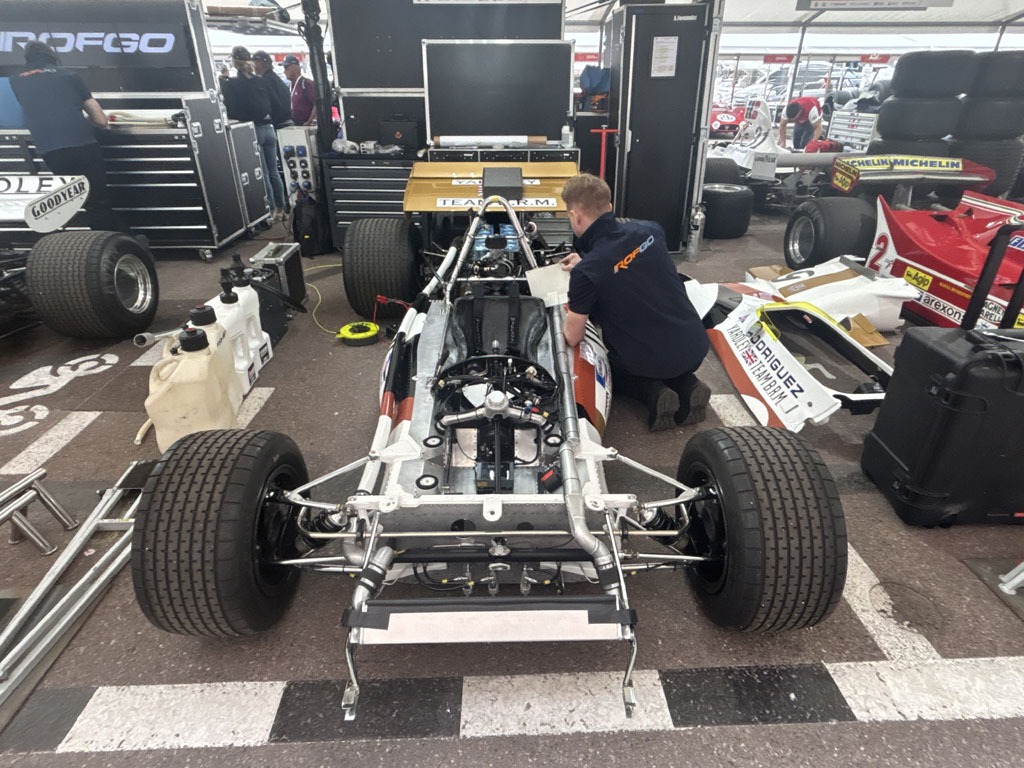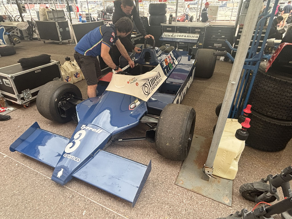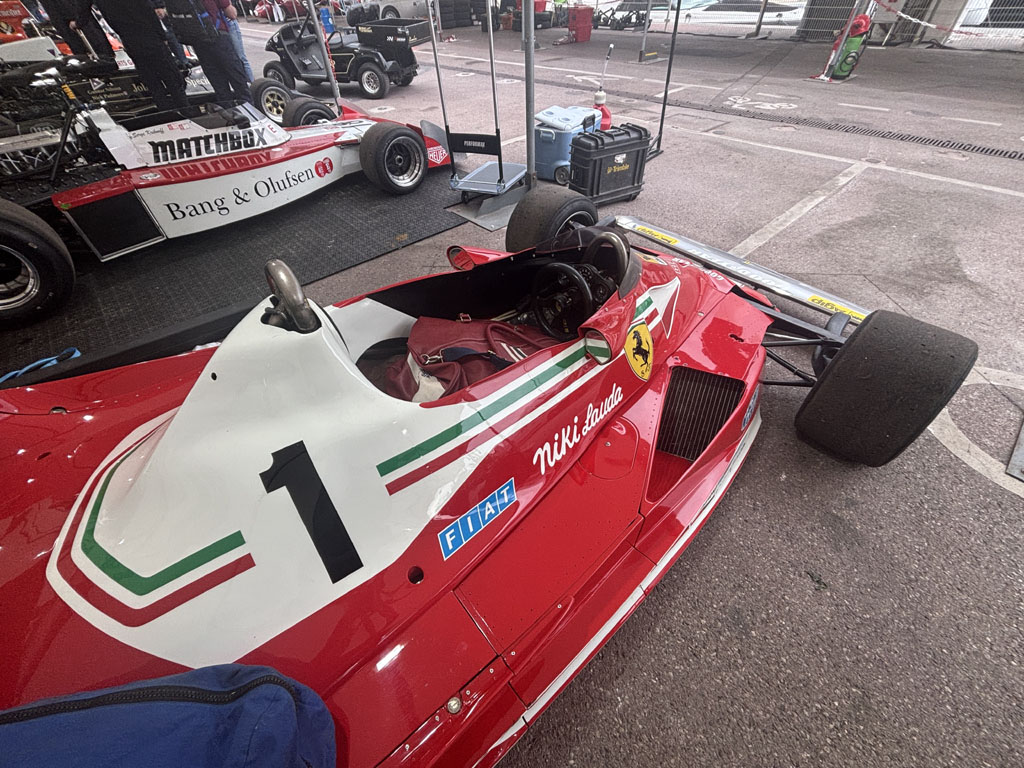 Le mercredi donc, on pouvait parcourir le paddock sans contrainte, s’approcher des Formule 1 qui ont gardé leurs couleurs de l’époque avec les noms de leurs pilotes d’alors : Gilles Villeneuve, Niki Lauda, Graham Hill, Jacky Ickx, Jody Scheckter, Ronnie Peterson, Denny Hulme, James Hunt, Emerson Fittipaldi, Chris Amon, Rolf Stommelen, Mike Hailwood, Riccardo Patrese, Hans Stuck, John Surtees, Didier Pironi, Jacques Laffite, John Watson, j’en oublie… On pouvait faire le tour des voitures, voir les chassis déshabillés, les mécanos s’affairer, entendre les premiers rugissements de moteur.