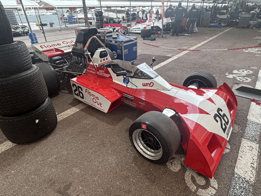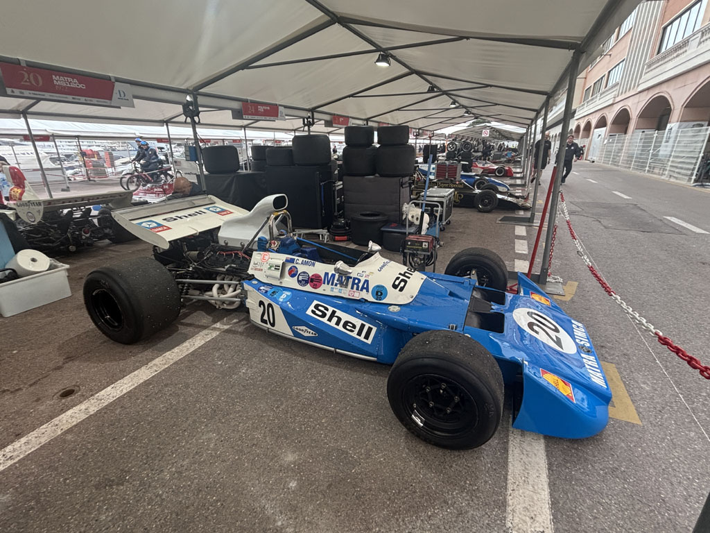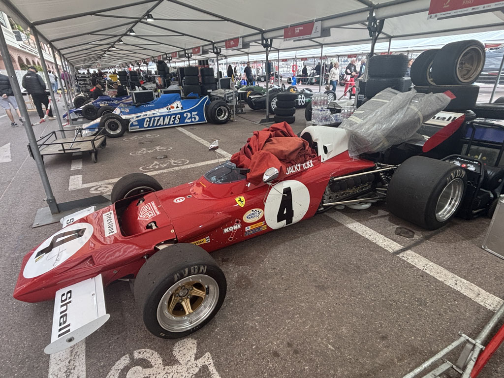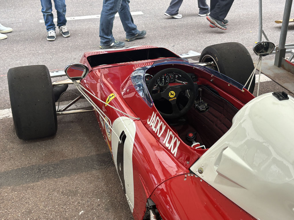 - Série D Jackie Stewart : voitures de Grand Prix F1 – 3L de 1966 à 1972, avec 3 classes selon année et moteur V8 Cosworth ou autre. Ferrari, Lotus, March, Brabham, McLaren, BRM, Matra, Surtees et l’unique Eifelland avec son rétroviseur central périscopique composent le plateau. On y trouve Michael Lyons, un ancien vainqueur de F1 historiques et notre John of B. national sur Matra qui fera retentir son V12. Jean Alesi est sur Ferrari 312 et ne fera pas gravier, y en a pas à Monaco !