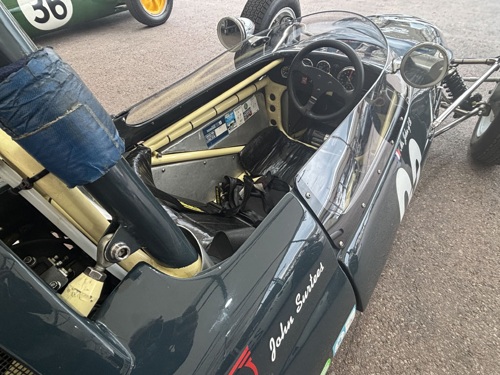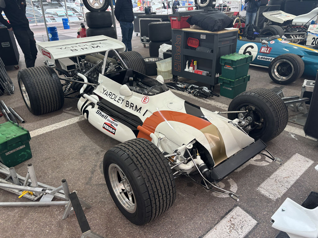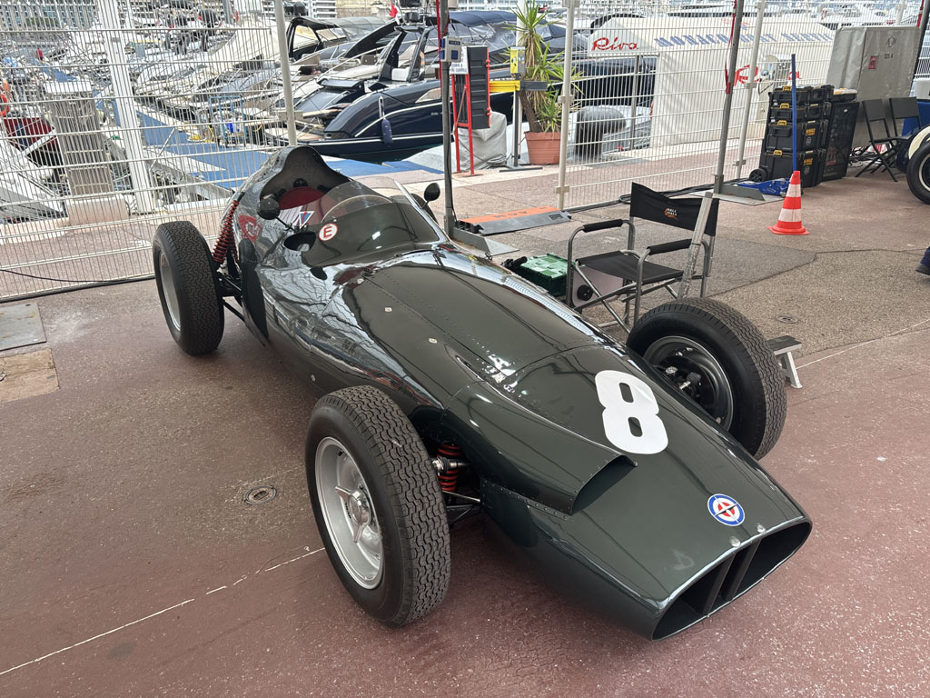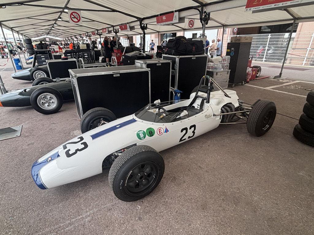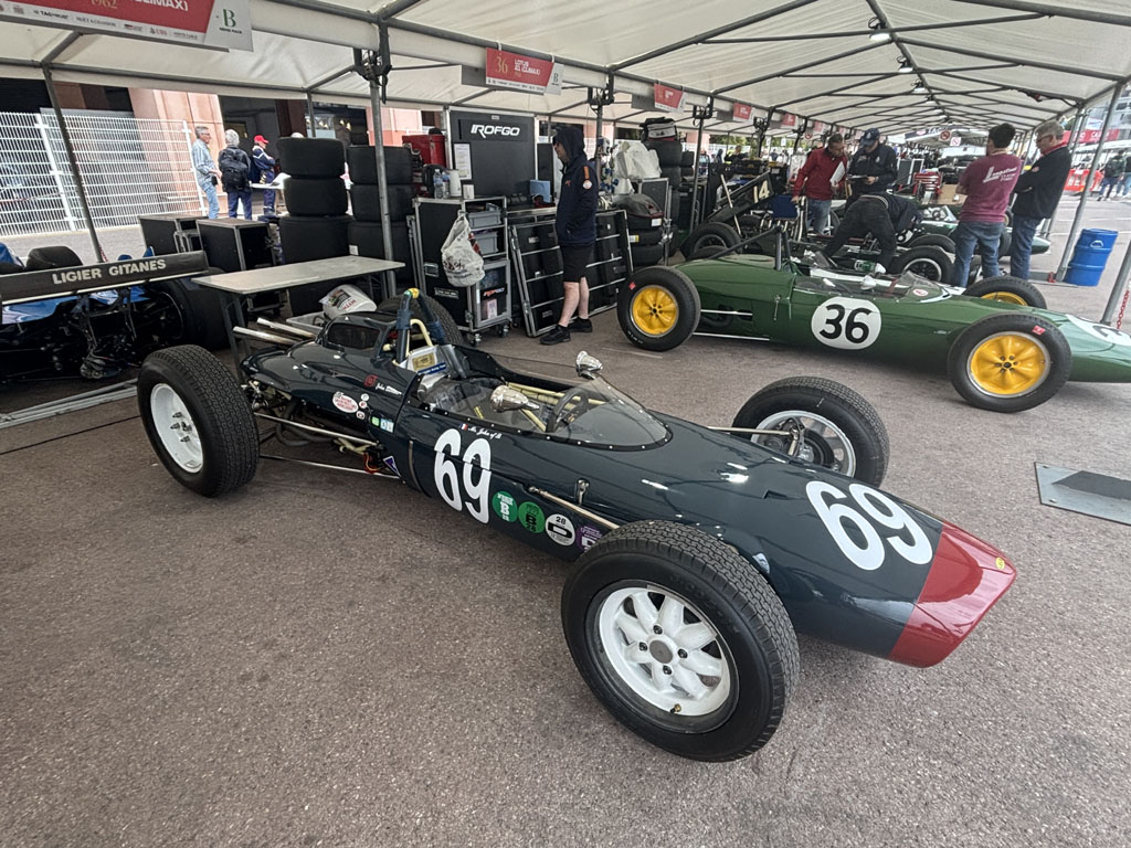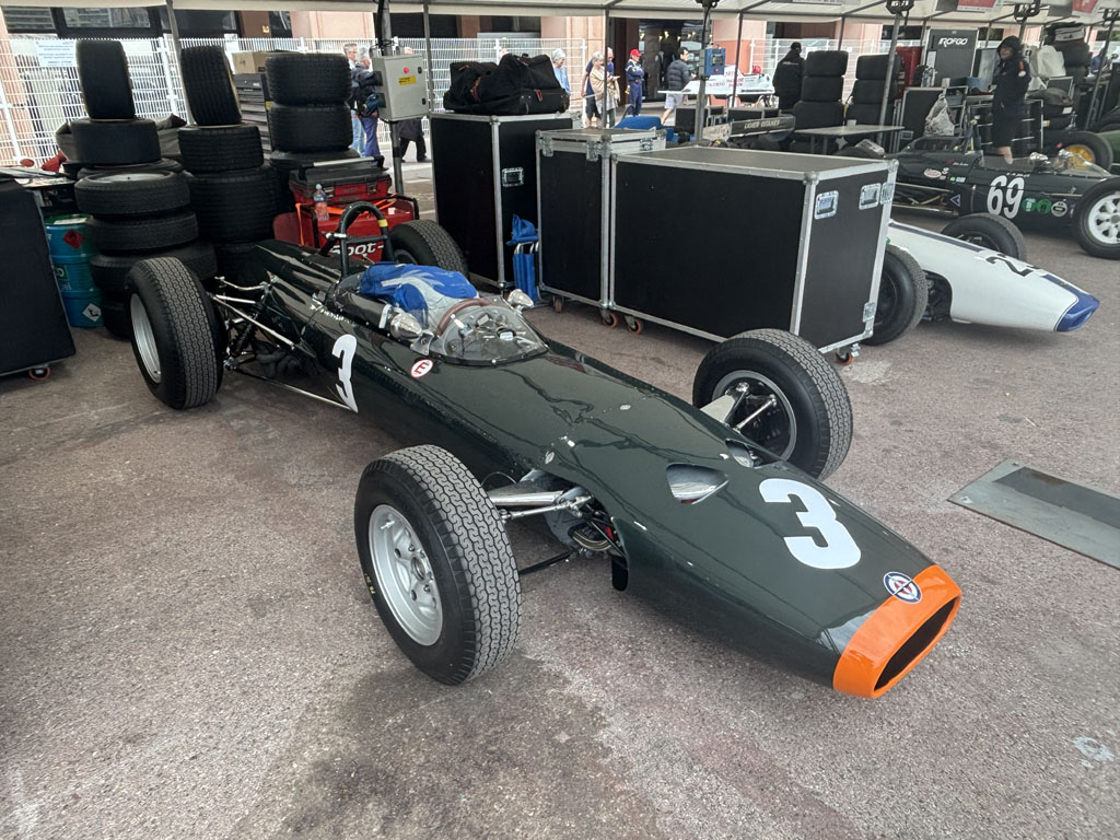- Série B Graham Hill : voitures de Grand Prix à moteur arrière, 1500, F1 de 1961 à 1965 et F2 de 1956 à 1960, avec 3 classes selon année et nombre de cylindres de 4 à 12. C’est le royaume des « cigar shapes », les voitures-cigares sans appendice aérodynamique : que des grands noms avec Ferrari, Lotus, BRM, Brabham, Cooper, Lola avec notre Mister John of B. pilote amateur national, Stuart Hall et pléthore d’amateurs.