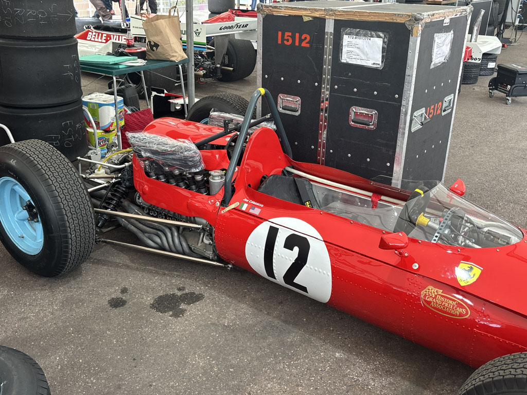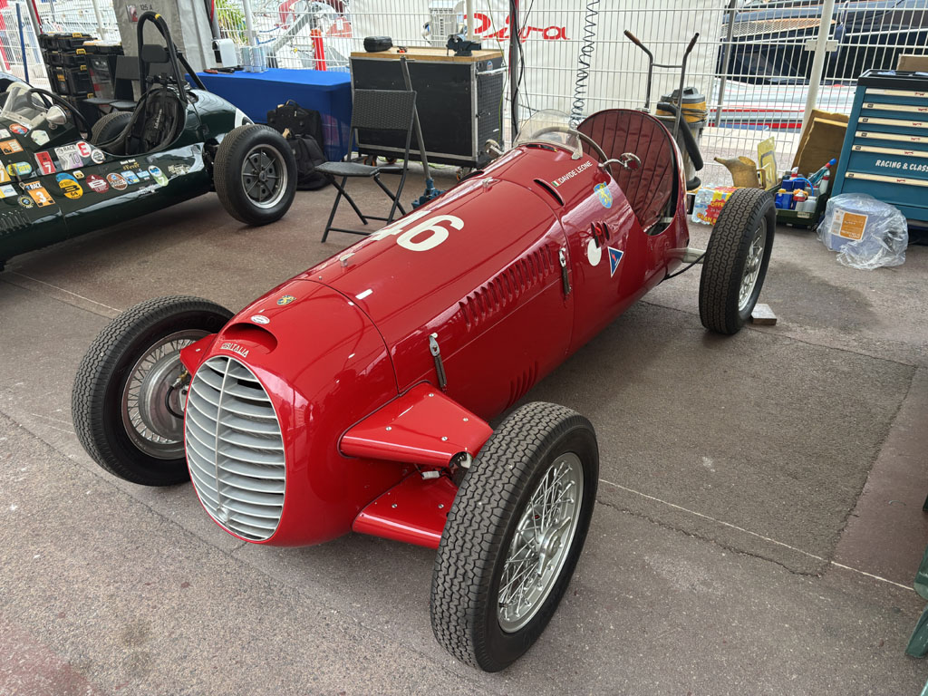 Entre les caisses et les piles de pneus, je découvre cette Ferrari V12 1500. Elle avait gagné sa série je crois il y a 2 ans.