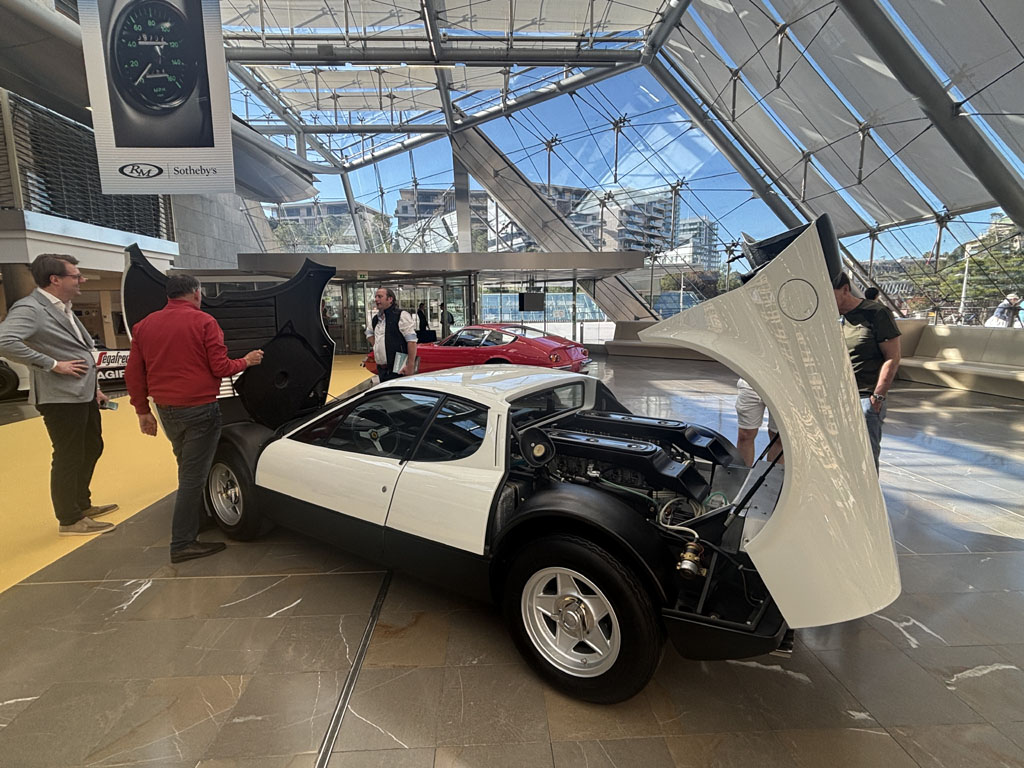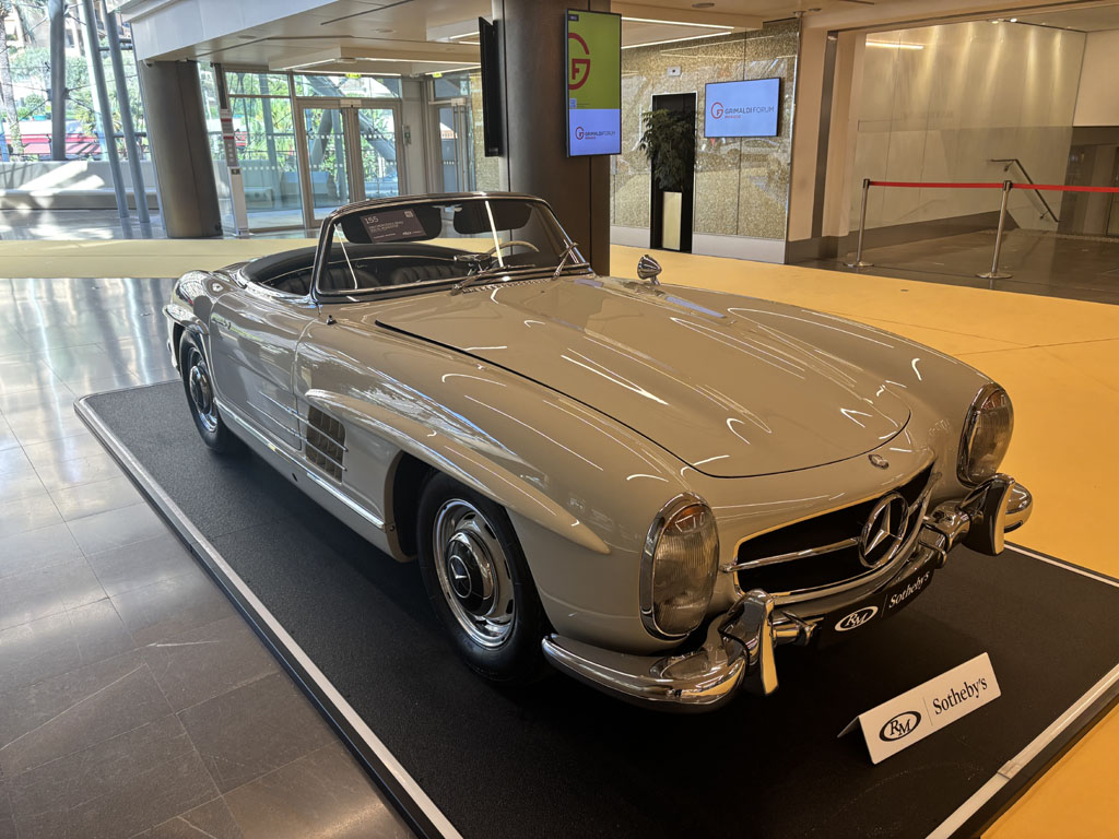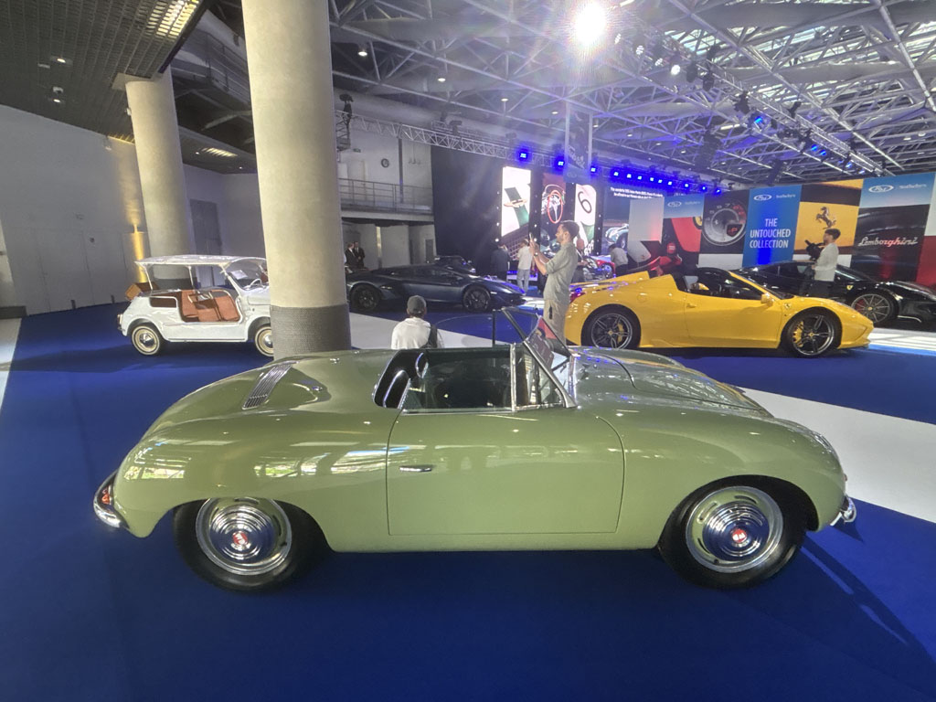 On poursuit la visite au rez-de-chaussée avec une sélection de Mercedes, Aston Martin, Ferrari et Porsche avant de monter à l’étage dans l’immense salle où des équipes variées préparent la vente et l’exportation. Les agents de sécurité sont omniprésents afin d’assurer la sécurité des autos. Il y avait comme d’habitude avec Sotheby’s du très très lourd, je ne vous cite que les plus chères estimations au dessus du million.