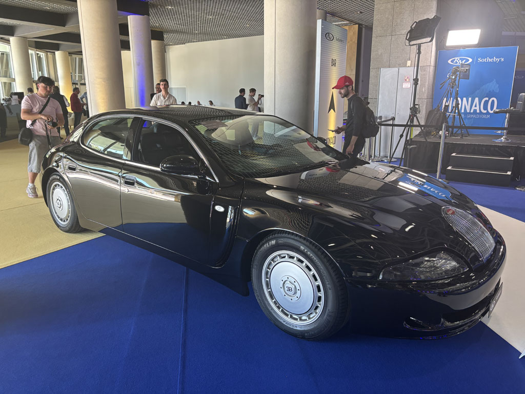 La rarissime Bugatti 4 places EB112 de 1999. C’est l’un des 4 exemplaires de pré-série fabriqués en Italie et terminés après la faillite de l’usine italienne. Celle-ci est monégasque et appartient à Gildo Pallanca Pastor, PDG de Venturi et promoteur immobilier. D’autres photos dans le diapo.