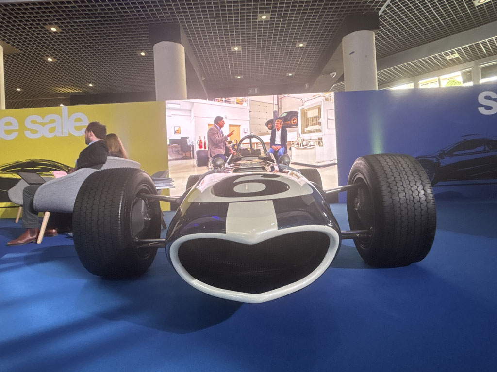 On est accueilli dès l’entrée au rez de chaussée sous les hautes verrières par la Formule 1 Toleman Hart Turbo avec laquelle Ayrton Senna avait fait ses débuts en Formule 1. C’est l’une des vedettes de cette vente et elle est estimée bien au delà des valeurs habituelles pour les Formule 1 sans palmarès particulier : 2,8 à 3,8 M€.