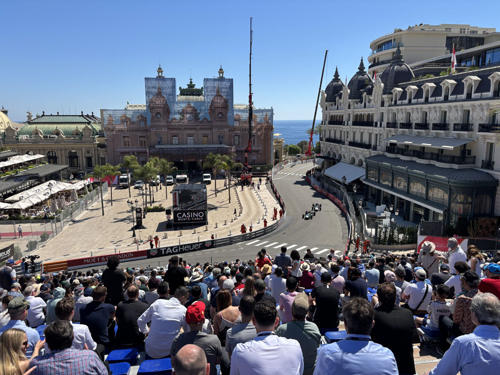 Au retour, je me suis rendu à la tribune du Casino pour essayer cet endroit, les tribunes étant gratuites le vendredi. Les essais libres du Grand Prix ont démarré et le rugissement des moteurs retentit dans toute la ville.