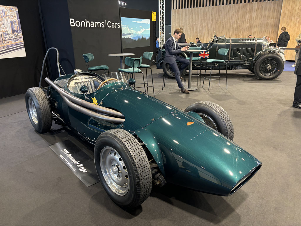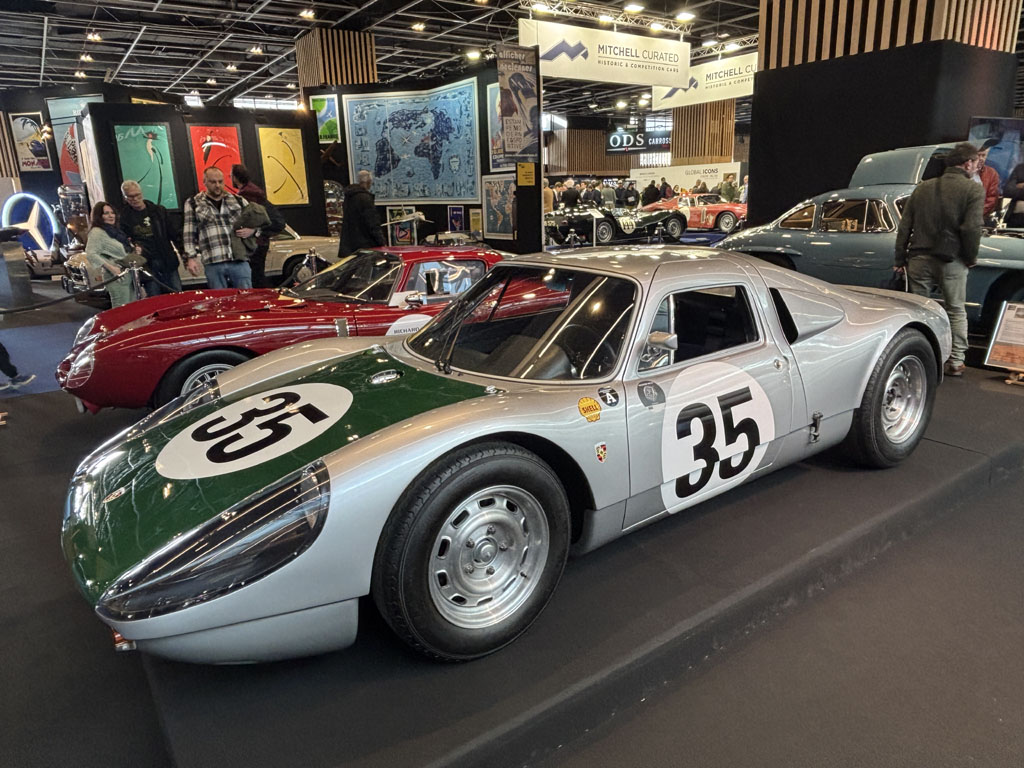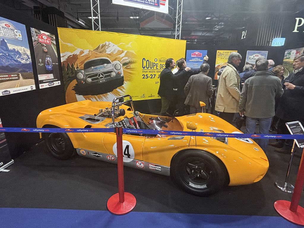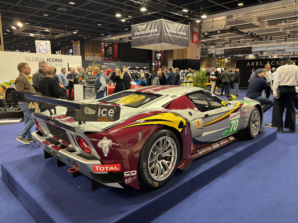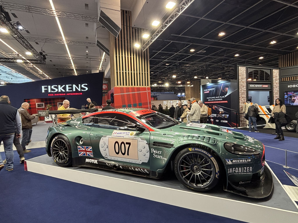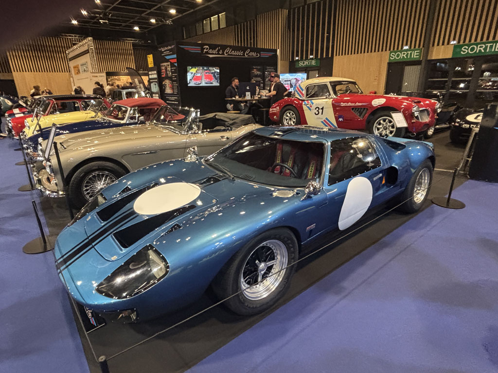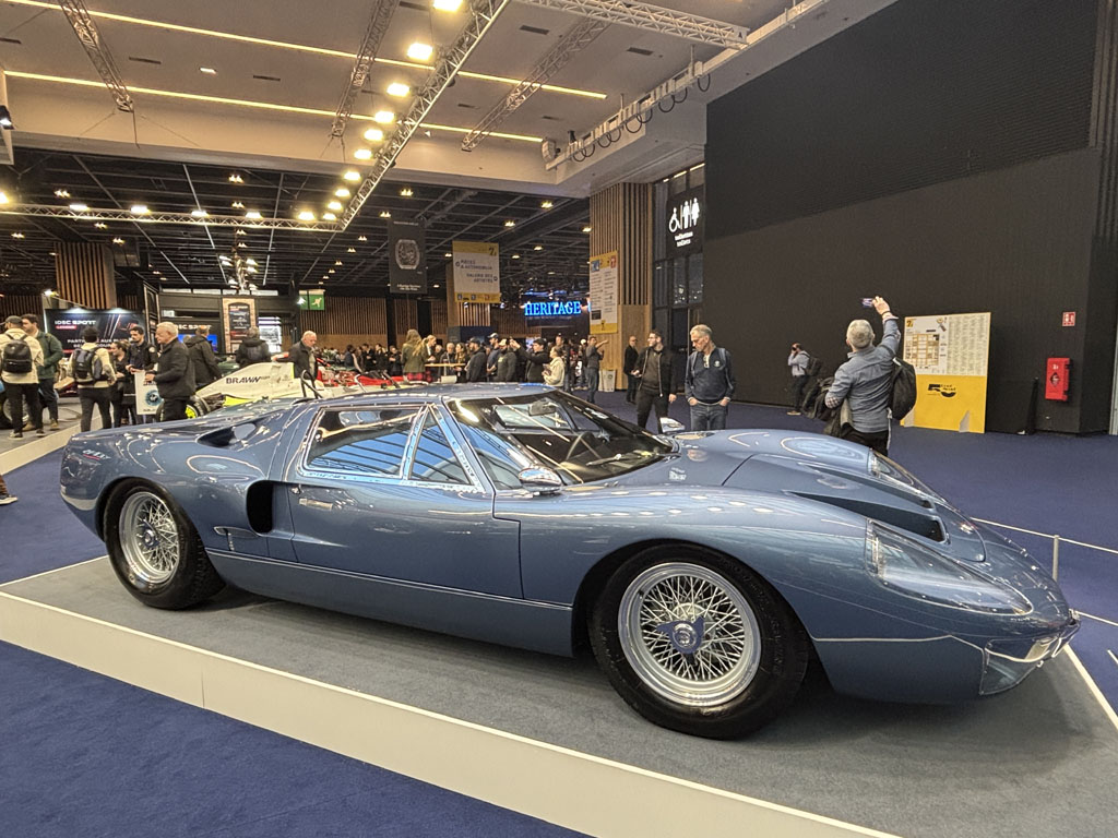 Fiskens Historic Automobiles est lui aussi un gros marchand londonien, présent chaque année à Retromobile avec des voitures exceptionnelles. Fiskens exposait notamment l’un des 4 prototypes Mk III LHD de Ford GT40 de 1966 :