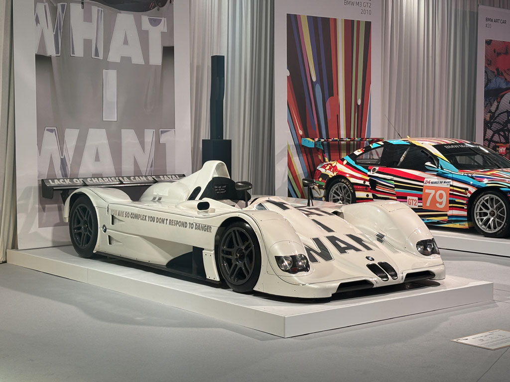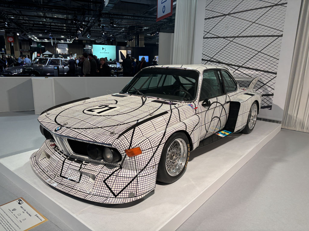 Elles étaient rassemblées sur le stand BMW ces fameuses art cars initiées par le commissaire priseur Hervé Poulain qui avait trouvé là le moyen de se faire sponsoriser par BMW pour courir au Mans : faire peindre ses voitures par des artistes renommés ! L’une d’elles a fait l’affiche du salon. Le stand était en partie privatisé à la soirée d’ouverture, de sorte que je n’ai pas pu toutes les photographier mais vous pouvez les retrouver ici. Toutes n’étaient pas présentes car toutes n’ont pas couru.