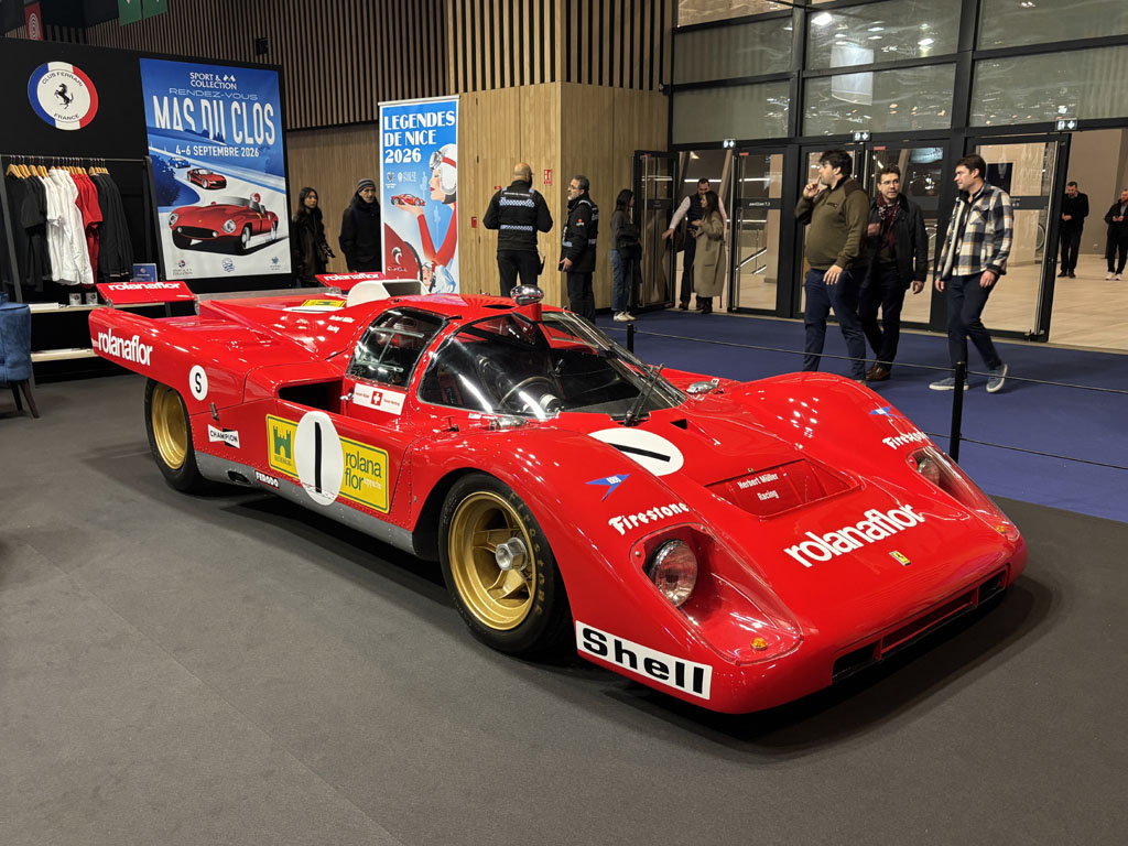 - Ferrari 512 (n° 27) : construite à 25 exemplaires pour répondre au règlement du championnat du monde des voitures de sport 1970, a surtout servi de faire-valoir aux Porsche 917 et n’a gagné que aux 12H de Sebring.