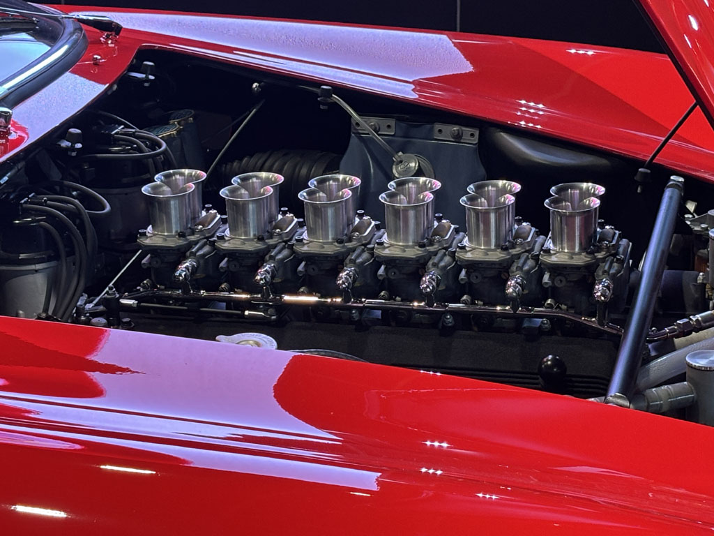 Quand on arrive, après avoir passé le coin des voitures à moins de 30000 € (voir en bas d’article), on débouche sur l’expo des voitures de la vente Gooding Christies et sur un véritable musée Bugatti. On y découvre des modèles de Bugatti peu connus et le fameux autorail Bugatti, transporté depuis la cité du train à Mulhouse. Il est propulsé par 4 moteurs de Bugatti Royale 8 cylindres en ligne 12750 cc à 1 arbre à cames en tête. Les 4 moteurs développent ensemble 800 chevaux. Magnifiquement restauré, c’est le seul survivant, les 87 autres de différents types ayant été ferraillés. C’était une prouesse technique à l’époque. Capable de plus de 170 km/h, il était souvent trop rapide pour la qualité des chemins de fer disponibles. Il a été produit de 1933 à 1938. Les derniers ont roulé sur la côte d’azur jusqu’en 1958.